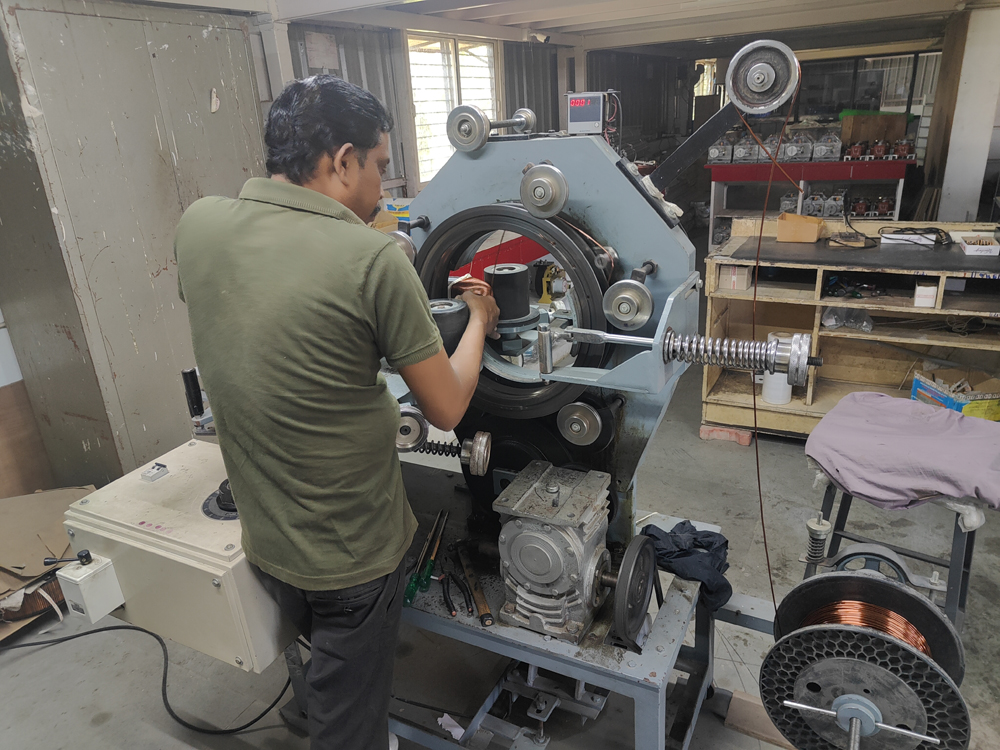 • Automatic coil winding machines (HV/LV winders – close-up of copper winding)